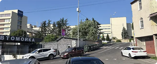 Мы находимся в центре Сочи, в районе с удобной транспортной развязкой Въезд с ул. Донская → направо на ул. Подгорную → здание слева